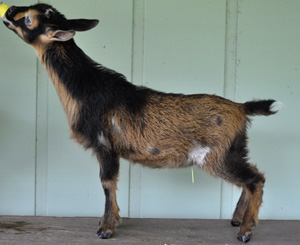 I'll get around to naming this doe eventually- mainly she's called "oh, hello sweetie", since during feeding time, she prefers to come touch noses with us instead of diving straight into her food. She's quite long bodied, with good depth and width, shows us lots of dairy strength, and exceptional brisket extension.