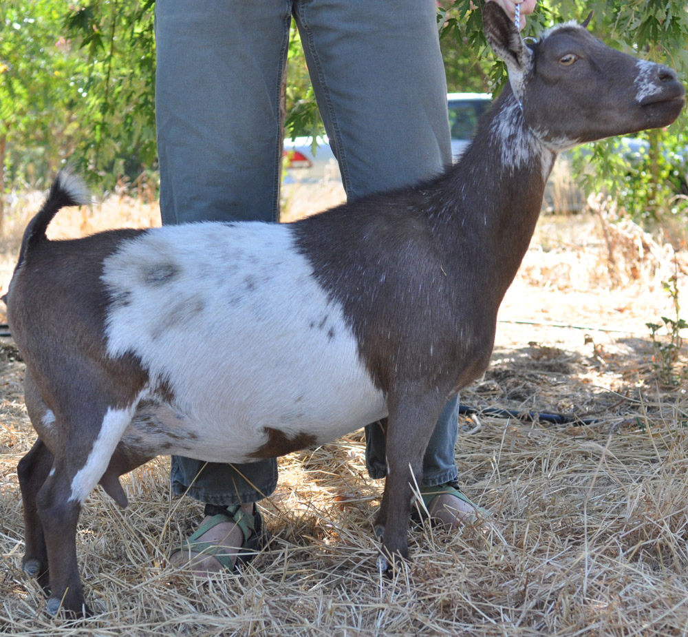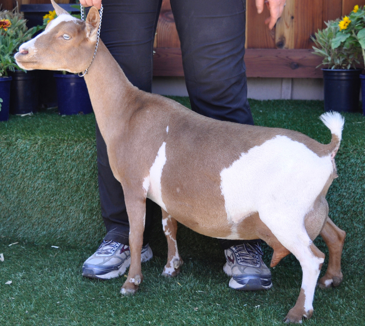Sire: Castle Rock Tanzanite +*B *S Flash never made it into the show ring as a junior because every time I went to pull her out of the pasture to get her ready for a show, she was in yet another funky/awkward growth stage, and ended up staying home. She is our ugly duckling of a kid who has turned into quite the swan! Her first show weekend was all it took to win her permanent championship. We had a Nigerian Specialty show just a week after she completed her permanent championship, and she was once more GCH, and part of our first place Dam and Daughter entry, and our first place Best Three Does entry, and she repeated all of those wins again in August at the Sonoma County Fair. In 2015, she started the year out rough, with a challenging delivery on a Friday the 13th, which lived up to its bad reputation, and suffering a few complications from that. After lots of care, she finally bounced back, and bounced back in a big way! After winning National Champion and National Best Udder, she went on to be part of our first place Best Three Females, and Best Dairy Herd entries. I love her general appearance, with that long lean neck, blending into her withers, and a great topline. Her front legs are set right under her shoulders, she has increasing depth and width of barrel, and her back legs are angular with good width between the hocks. Her udder is capacious and well attached, with soft texture, and large easy to milk teats. She is so feminine and elegant, but clearly also a powerful doe without being course. Flash was killed by a coyote in February 2018 just a few days before she was due to kid for the first time since 2015. Of all the goats on our farm the coyote could have picked, it could have been literally anyone else and it would not have been as devastating. There are so many things to say, but that would be an essay that would take up way more than anyone wants to read here. There's a huge hole in our herd as we were counting on her genetics to help carry the herd forward, and to lose that opportunity so unexpectedly has me reeling a bit. DHIA: