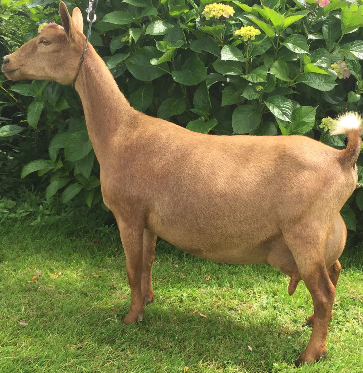 GCH Castle Rock Raspberry Beret 5*M VEVE 91DOB 03/05/11 20" at 6+ years 1xGCH Jr., 2x GCH Sr., 1x BOB, 2x BU, 4xRGCH, 1x Best Udder in Show Third place four year old, second place udder, first place Dam and Daughter, ADGA National Show 2015 LA: V+VE 87 2017 LA: VEVE 91