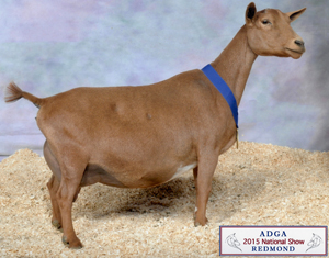 Castle Rock Fedora 6*MDOB 03/28/13 height 19 3/8" at two years 1 x GCH, 1x RGCH, 1x BOB Third place two year old, second place udder, first place dam and daughter (with her dam), ADGA National Show 2015 LA: ++VV 85