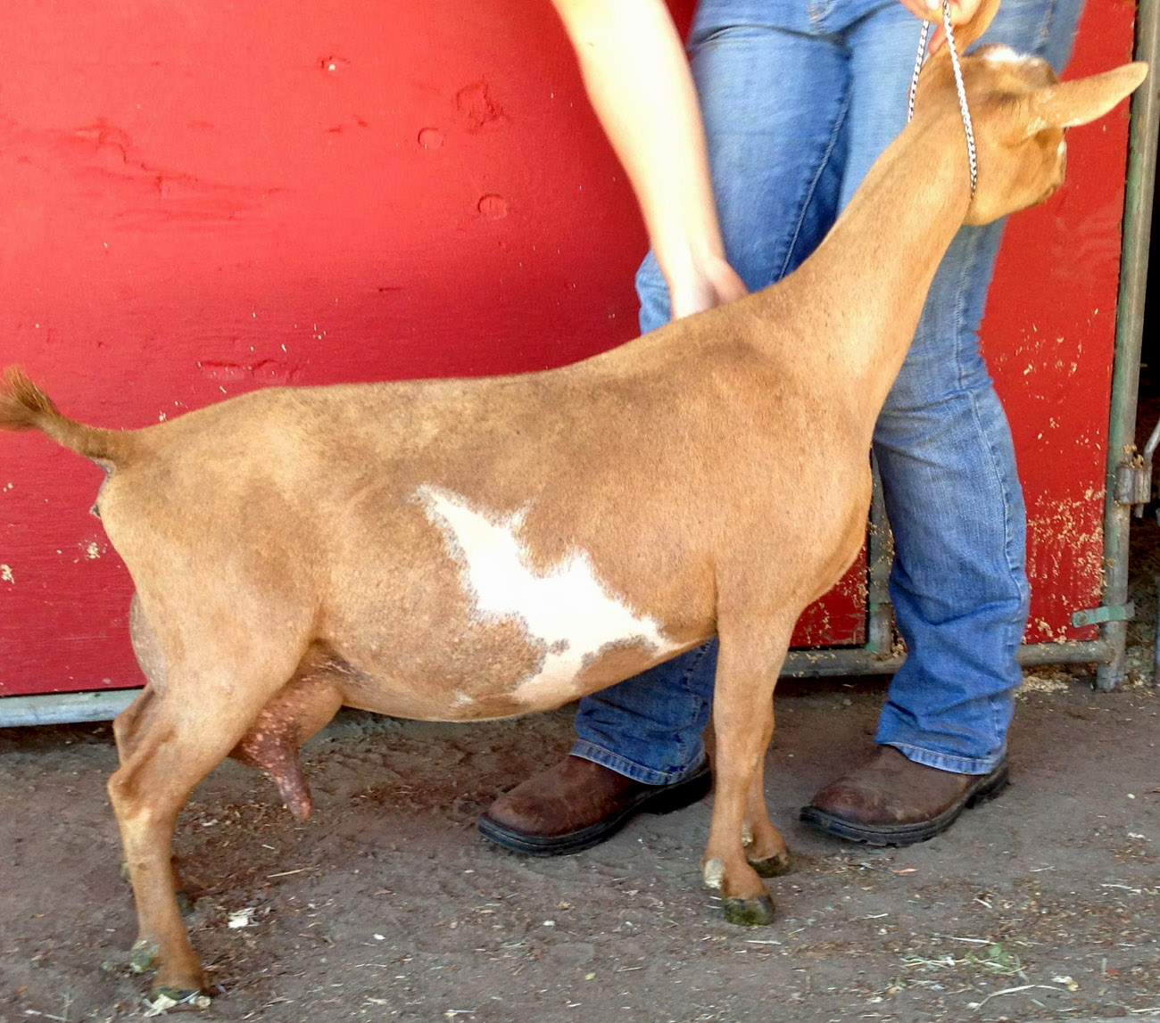 Sire: Castle Rock Tanzanite +*B +*S I really like Cleveland Sage, but when he was born with a brother, I decided to repeat the breeding in hopes that I would get a doe to retain, and (woot!) here she is. Clover is long bodied, and dairy, with elegance, femeninity, good brisket extension and angularity. Her udder is well attached with an exceptional amount of foreudder extension, a good MSL and teats that are large, plumb, and easy to milk.